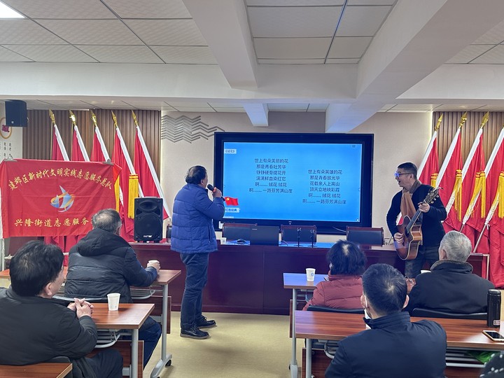 为进一步激发和弘扬社区居民的爱国情怀,加强思想政治引领,充分发挥好红色歌曲的宣传教育作用,2月8日下午,桃园居社区新时代文明实践站组织开展“唱响中国 红色史诗”主题活动。