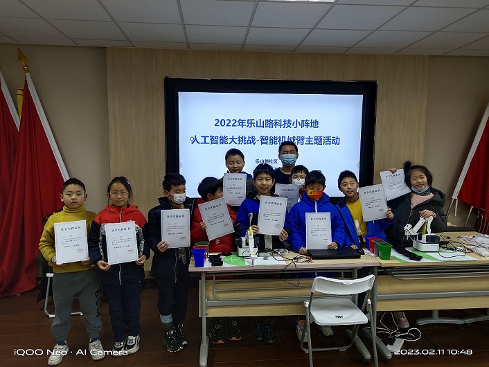 “乐山路社区科技小阵地-智能机械臂”活动旨在向辖区内的青少年儿童普及人工智能、智能制造技术,通过实践操作智能机械臂帮助青少年了解机器人、人工智能在现代生产、制造和生活中的应用,培养青少年儿童的科学兴趣,帮助他们树立科学精神。
