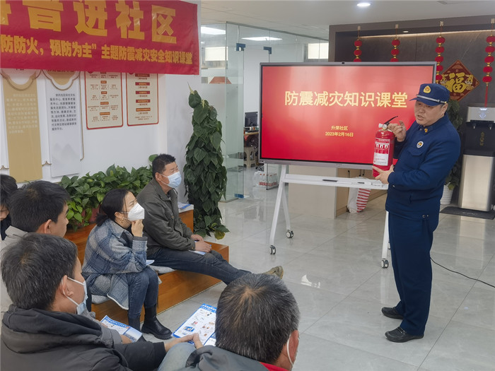 为提高辖区居民的防震减灾意识,进一步增强辖区居民的自救互助能力,营造宜居宜业、安全和谐的生活环境。升荣社区于2月16日下午举办“防震减灾知识课堂”活动,本次活动邀请辖区部分商铺代表、业主代表。由建邺区消防大队消防巡查员陈程进行授课。