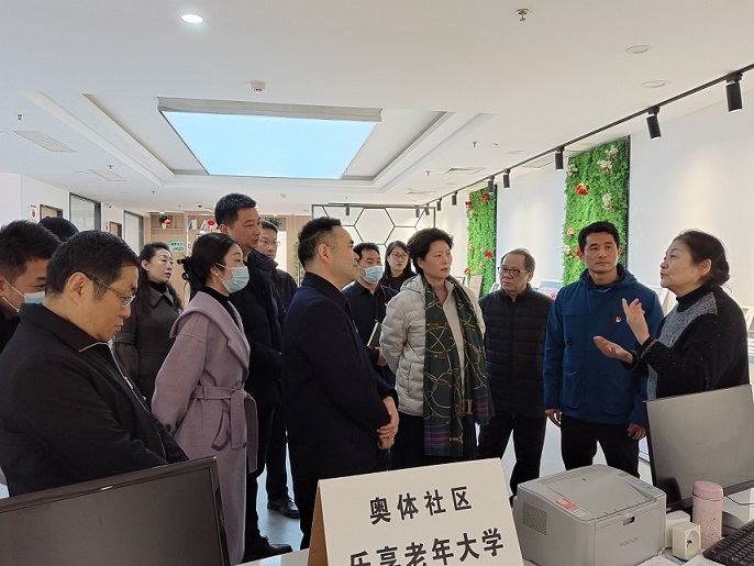2月16日上午省教育厅监管与社教处处长吴胜东一行赴兴隆街道奥体社区检查调研校外培训机构治理与社会教育工作。社区党委书记万涛向调研组一行汇报了社区24小时便民服务中心和社区“乐享”老年大学的运行情况。重点介绍了通过社区24小时便民服务中心和社区“乐享”老年大学,“线上+线下”相结合开展社区教育工作,并将“红立方”党员志愿服务联盟党建特色品牌与社区教育工作有机结合,积极探索自助式、互助式、体验式以及志愿服务融合社区教育的新模式,进一步满足居民和辖区企业个性化、多样化的服务需求,在服务民生零距离中传递初心和使命。