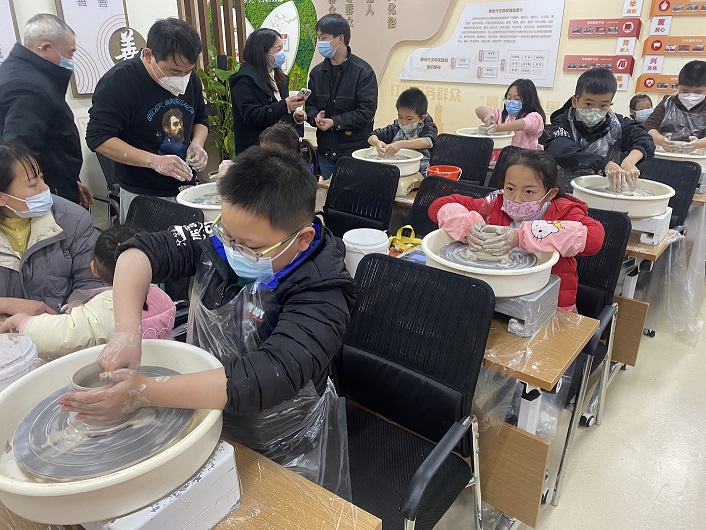 活动中,在授课老师的简单指导后,青少年用经过加工和调制做成泥团,将泥团放在转盘上,进行旋转拉伸,拉出泥坯的大致造型,然后利用画笔和防水颜料,在各种造型的陶瓷上进行彩绘。活动持续近1个多小时,每个孩子制作出了一个个精美的陶瓷作品,脸上洋溢着成功的喜悦和自豪。