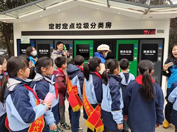 中华附小的学生在社区工作人员的引领下,学生们带着垃圾袋、垃圾夹子等工具踏上了探索的道路。第一站来到了辖区内的河道边参观河道,汤书记向同学们介绍了河道的相关知识,了解河长制,号召大家保护水资源,同学们认真聆听,热情高涨,积极举手回答问题。第二站我们来到了听雨苑小区,在小区内,同学们相互分享垃圾分类小知识,了解垃圾分类的意义和标准,随后大家三五成群充当起小小志愿者,纷纷拿着工具在小区的草地上捡废弃的纸片、树叶、塑料袋等垃圾,并根据自己所学的垃圾分类知识,投放到垃圾分类箱中。同学们干的热火朝天,每一个小小的身影都是一份坚实的力量。小区的居民路过时纷纷向同学们竖起了大拇指,夸奖他们是环保小卫士。(苍山路社区苏平 图片苏平 审核张玲)