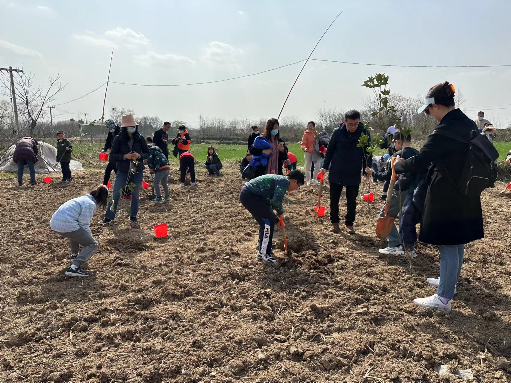 当春风吹拂大地,我们迎来了植树的好时光。“家长和小朋友们知道植树节是怎么来的吗?”当天,老师结合植树节的来历为大家普及环境保护知识。家长和孩子们化身绿色使者,分工合作,栽苗、培土、浇水……各组亲子家庭认真种下一棵棵树苗,将春天的一抹抹绿意扎根土体,为绿色环保作出一份贡献。