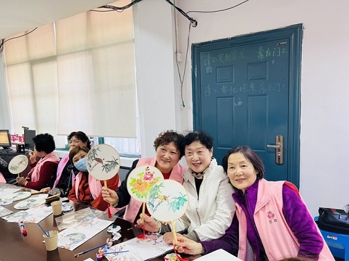 画扇画扇,把善意送给别人,古时候送画扇也是送善意,通过此次活动表达社区对辖区妇女的关系,也拉进了居民与社区的关系。
