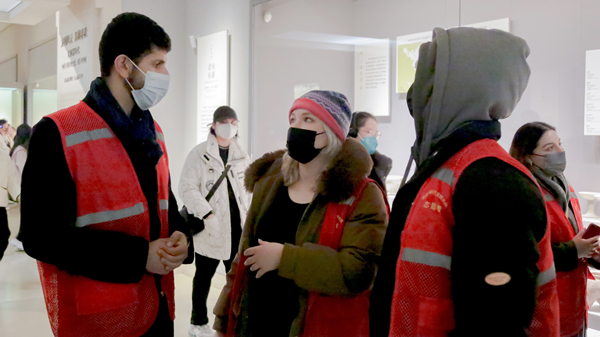 参加活动的四名外籍友人分别来自哈萨克斯坦、摩洛哥、津巴布韦、厄瓜多尔,是社区挖掘的外籍青年志愿者骨干,平日积极参与了社区助残助困、关爱老人、儿童成长、文明环保等公益志愿服务活动。长期的公益志愿服务让他们不断发现中国社区的人文之美,他们惊叹于中国共产党领导下社会的迅猛发展,也希望通过参加此次活动进一步加深对中国传统文化的了解,探索中国人民所具有的独特品格和智慧。随着参观的深入,一幅幅图片、一件件实物,让他们徜徉在历史长河中,感受中国“上下五千年”的文化积淀,纷纷感叹中国发展中的砥砺沧桑、励精图治和人才济济。
