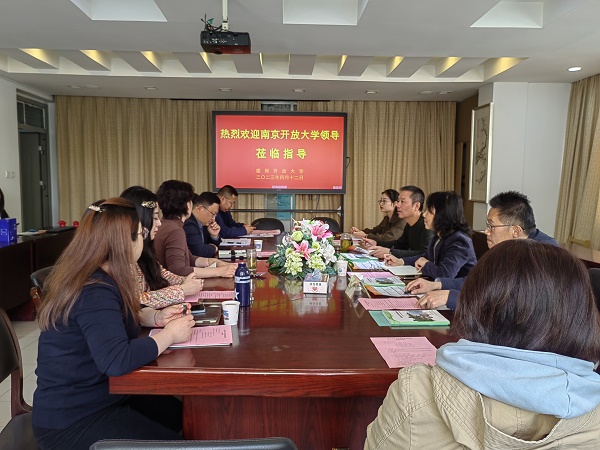 4月12日上午,南京开放大学副校长江景带领社会教育中心主任孙新元、继续教育中心老师沈炜和黄安琪到建邺开放大学就进一步做好国家开放大学办学评估工作、推进老年大学建设、筹建南京城市职业学院职教集团等开展调研并举行座谈会。建邺开放大学副校长章学军及学校各职能处室的负责老师参会。