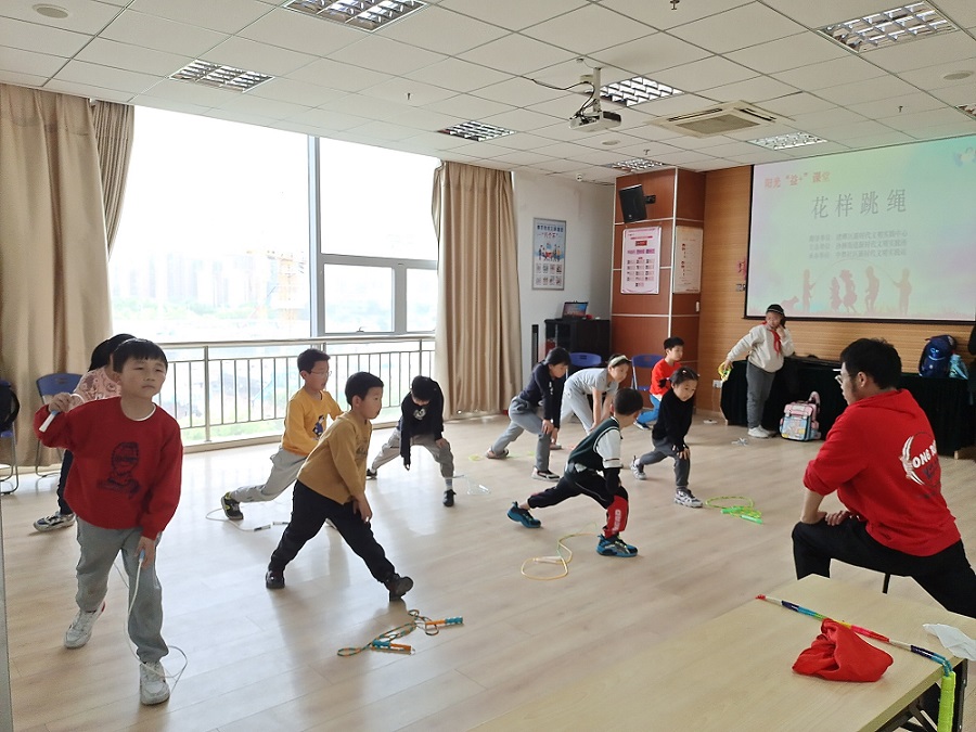 花样跳绳是孩子们十分喜欢的一种体育活动,对青少年的身心健康发展有良好的促进作用。4月13日下午,沙洲街道中奥社区关工委根据“阳光益+”课堂活动要求,在校外辅导站开展了一场有趣的青少年花样跳绳培训活动,辖区20名青少年参加。
