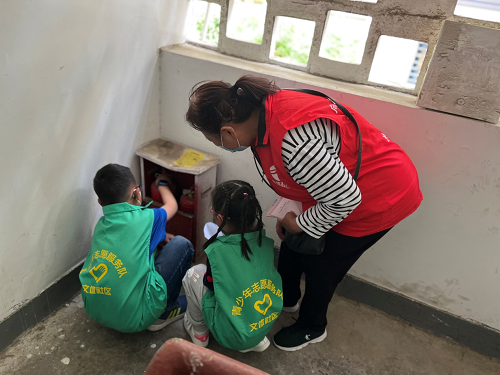 结合消防培训,志愿者们分组在文体西村各楼栋进行消防器材排查,并将排查情况记录下来。所有楼栋检查完毕后,青少年志愿者总结并汇报了排查情况。