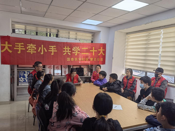 国泰民安社区开展“大手牵小手 共学二十大”活动