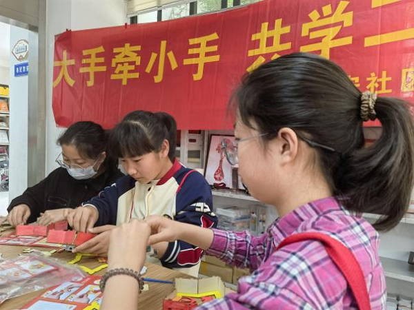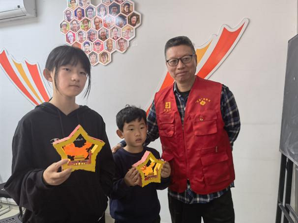 接着,老师给青少们发“星星向党”材料,并讲解了制作步骤和注意事项。了解了制作流程后,青少年们快速投入到制作中去,着色、取零件、安装。 他们一起动手参与手工制作。一双双求知的眼睛在仔细观察,一双双灵巧的手小心翼翼地涂抹颜色,一件件作品相继拼装完成,大伙儿不亦乐乎!