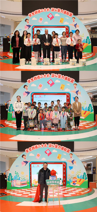 来自邺城路小学、鹤鸣幼儿园及社区“萌芽少年”儿童议事会的小朋友们,为大家带来精彩的诗歌朗诵和舞蹈演出,奏响了活动的精彩乐章;居住在吴侯社区的“书香家庭”代表分享了他们的家庭阅读故事,其中2022年“建邺区最佳阅读推广人”、86岁高龄的管培峰爷爷“哪怕吃树皮、嚼草根,也要读书”的故事让现场观众们感动万分;社区党建联盟单位党员,带来情真意切的烈士家书与壮志豪迈的革命诗歌朗读,响彻大厅,将活动推向高潮。建邺区妇联副主席魏华聪、双闸街道办事处副主任王婧分别向辖区“书香家庭”和“阅读新星”颁发了荣誉奖杯和奖牌。建邺区文旅局领导为社区图书馆揭牌,将2千余册图书送到居民家门口,打通畅享阅读最后一公里。