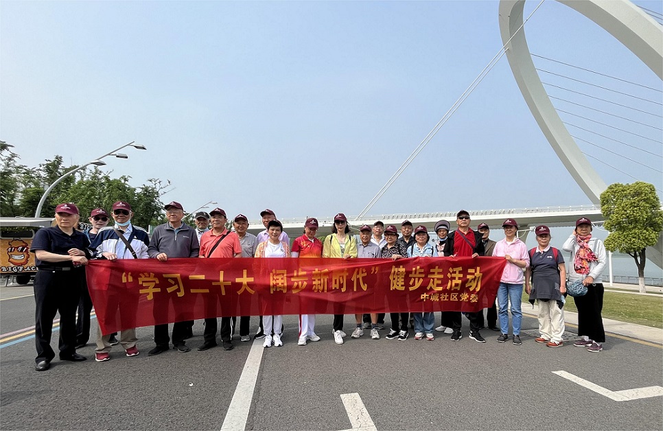 中城社区开展“学习二十大,阔步新时代”健步走活动
