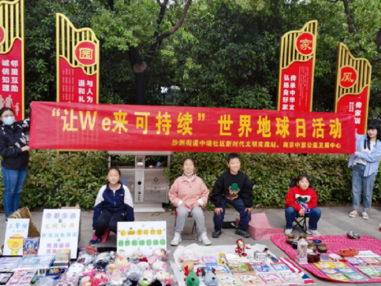 每年的 4 月 22 日是世界地球日( The World Earth Day),这也是一项世界性的环境保护活动。为了引导辖区青少年树立“绿色低碳循环利用让地球生生不息”的环保意识。4月22日上午,沙洲街道中瑞社区联合南京中慈公益发展中心在社区公共文化活动广场开展了世界地球日“让 We 来可持续”环保主题活动。