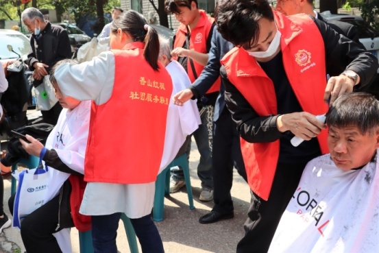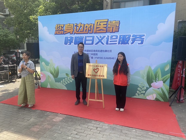 4.27日上午怡康社区邀请江苏省第二中医院、一家亲社会组织、南财Sunny志愿者团队开展了一场“平安健康过佳节 红怡家园乐融融”的活动,现场三甲医院医生为居民进行义诊、健康咨询、普及哮喘知识、强调规范治疗重要性,现场怡康社区书与Sunny志愿者团队孙开慧部长共同揭牌——“康邻”青年团大学生社会实践基地,医院的医生积极回答居民的各种健康疑惑,志愿者为年迈不好外出的老人进行理发,现场一片热闹氛围。