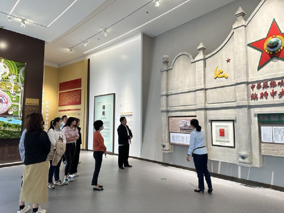 在讲解员的带领下,集体参观学习园区的旗阵广场、宣誓广场、宪法宣传教育展、主题雕塑、共享绿谷等,宪法宣传教育展是南京宪法公园的核心,336张图片、106件(套)展品、11张图表、16个艺术场景、27项多媒体演绎项目,全景式展示了中国共产党带领中国人民寻宪、制宪、修宪、奉宪的伟大历史进程,党员们边学习法律知识,边领略宪法精神。“这个宪法公园为我们学习宪法知识提供了更好的平台,比起在室内集中学习,我更喜欢这种学习方式,在休息放松的同时能学到法律知识,感受深厚的法律文化氛围。”一名青年党员边观看边感叹道。