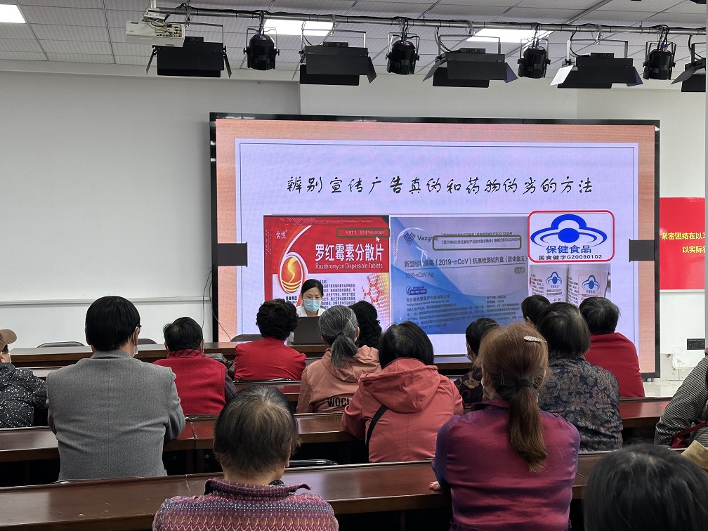 5月10日下午,莲花南苑社区联合莲花卫生院在社区大会议室召开健康专题知识讲座,药剂科主任邱玲医生就用药安全、合理健康用药开展了专题讲座,讲解了糖尿病、高血压等常见慢性病及其并发症的科学预防和居家用药知识。课程结束后,工作人员还为现场每一位老人测量血糖、血压、检查眼底眼周并询问老人的健康情况,提醒老人关注自身健康,均衡营养,适量运动。积极为空巢老人排忧解难,营造关注“空巢老人”的良好氛围。