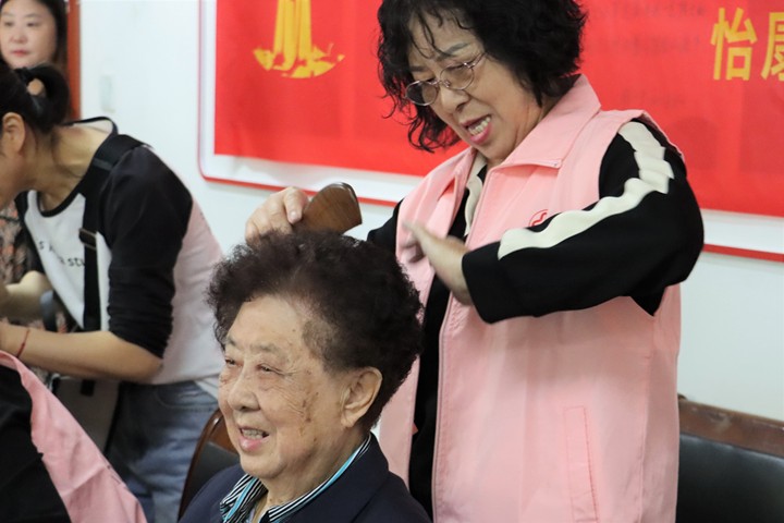 5.12上午9点半,怡康社区精心组织了一场“致敬母亲节 干花DIY花灯”制作活动,现场社区邀请了4对母女家庭,活动开展中 老师建议女儿为妈妈梳梳头,女儿拿起梳子细细的为母亲梳头,稀疏的白发分外显眼,梳弯头后老师开始教大家制作干花花灯,用胶水把干花轻轻的粘在花灯的灯身上,不一会米色的灯身上贴满了五颜六色的干花花瓣。