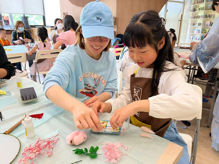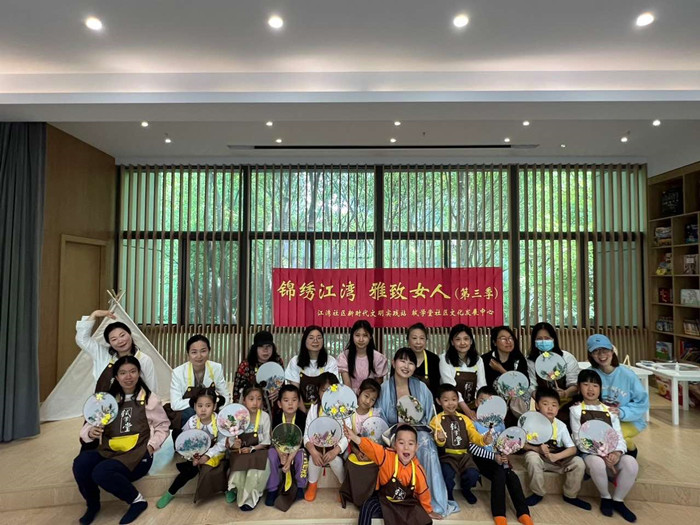 江湾社区开展“锦绣江湾 雅致女人” 亲子手作干花团扇活动