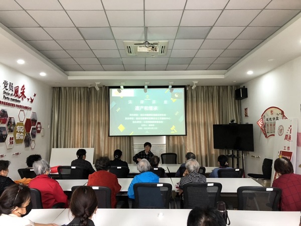 2023年5月23日下午, 建邺区南苑街道国泰民安社区和南京市建邺区昱辉社会工作服务中心联合开展“法治课堂”讲座 ,邀请江苏省鸿创律师事务所袁家宝律师,为社区空巢独居老人讲授《民法典》之遗产继承相关法律知识讲座,及咨询服务。