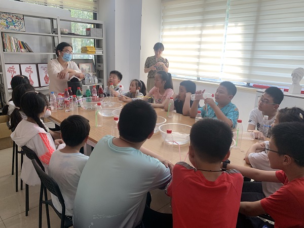 活动一开始,老师就开始提问: 干冰的温度是多少度呀?干冰的主要成分是什么呢?干冰可以放在冰箱保存吗?干冰有什么用途呀?孩子们纷纷抢着回答,有答对的,也有答错的,现场气氛很是活跃。接着老师用香蕉接触干冰变硬让孩子们直观感受干冰极冷的温度,然后开始体验它的神奇,当干冰遇到热水时,瞬间云雾袅绕,吹泡泡,顾名思义都是用嘴来吹!不,原来干冰也可以吹泡泡,现场孩子们在老师的指导下,体验了一把干冰是如何吹泡泡的。一个又一个的干冰秀,魔法般地出现在孩子们的视野里,此次活动不仅丰富了孩子的科技知识,更能引导青少年们学习科普知识,提高他们的探索能力。