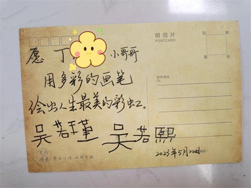 来自南京的热心小姐妹吴若瑾、吴若熙看到社区在建邺五微共享社区平台发布的微心愿,委托她们的爸爸主动联系社区,表示要认领了一个“微心愿”:社区残疾儿童丁丁(化名)想要一套60色的丙烯马克笔和画本,两姐妹第一时间让爸爸把马克笔和画本送到社区,并特意给丁丁哥哥写了一张祝福贺卡,委托社区帮忙送达。5月26日下午,爱达社区妇联、关工委也为丁丁小朋友准备了一个可以画画写字的白板及画架,并写上节日祝福一同送到了丁丁小朋友的家中。丁丁小朋友的家长表示“感谢社区和爱心人士的付出,让孩子实现了愿望,心里很温暖。”