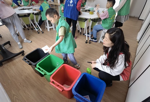 垃圾分类投放游戏、知识问答、拍手歌等趣味活动,让青少年志愿者在互动中进一步提升了对垃圾分类的了解。