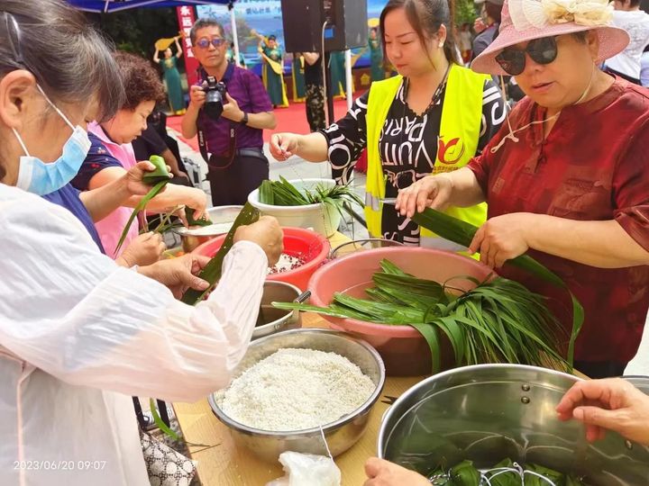 活动现场,大家有说有笑,一边交流着包粽子的技巧,一边分享自己家乡的传统风俗。看着呈三角形状的粽子一个个都那么饱满,居民和志愿者的脸上都露出了笑容。
