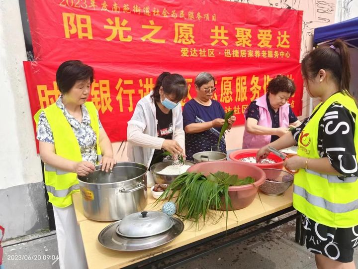 端午节即将来临,为弘扬中华优秀传统文化,充分挖掘端午节的深厚文化内涵,进一步丰富居民群众的文化生活,让广大群众深切地感受到传统节日的独特魅力,南苑街道为民服务项目“阳光志愿,共聚爱达”项目——端午节志愿活动,6月20日上午在爱达社区小广场开展。