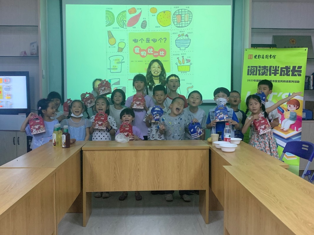 活动到场18组家庭共计35人次。本场沙洲街道阅读活动的主题是“自然科普”,精选的书目是来自日本的经典食育科普绘本《哪个是哪个?食物比一比》。本书采用图鉴对比的方式,清晰、详细的解说了各类食物的相同点和不同之处。同时也进一步给读者揭示出食物的来历、生长过程、营养构成及科学饮食的秘密,是非常经典的必读科普读物。