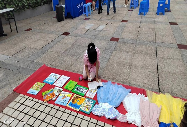 闲置物品义卖及置换活动专区,居民朋友带上家中不用的小家电、书籍、衣物、自行车、生活用品等半成新以上闲置物品前来摆摊。活动现场有赠、有卖、有互换,刚考过试的甄漪雯小朋友,在外婆的陪同下,带着自己很多条漂亮的连衣裙、图画书,加入到活动中来,当怀抱幼儿的居民问连衣裙价格时,小姑娘腼腆伸出一个手指头,说:“一元一件,欢迎挑选”!