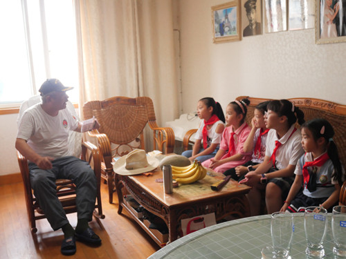 在社区工作人员的带领下,孩子们共同前往周边社区,外出走访、慰问。在一处垃圾处理站旁,孩子们向环卫工人学习了垃圾分类的方法,也为环卫工人送上了慰问品。而后,孩子们分队前往爷爷、奶奶的家中,为爷爷、奶奶送上了生活物资和慰问品,孩子们还与老人们并膝交流,聊天谈心,分享了今天学习到的解暑降温的方法,关心着老人们的身体和生活。