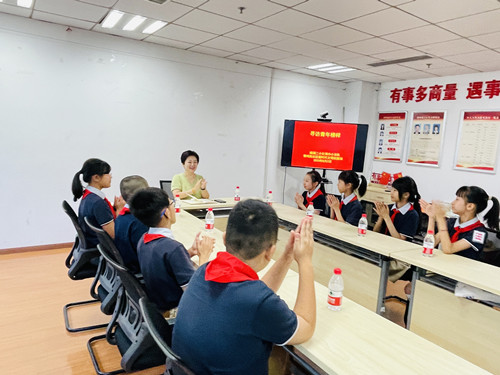 8月2日上午,南湖二小少先队走进鹭鸣苑社区新时代文明实践站开展“红领巾寻访榜样”主题活动。