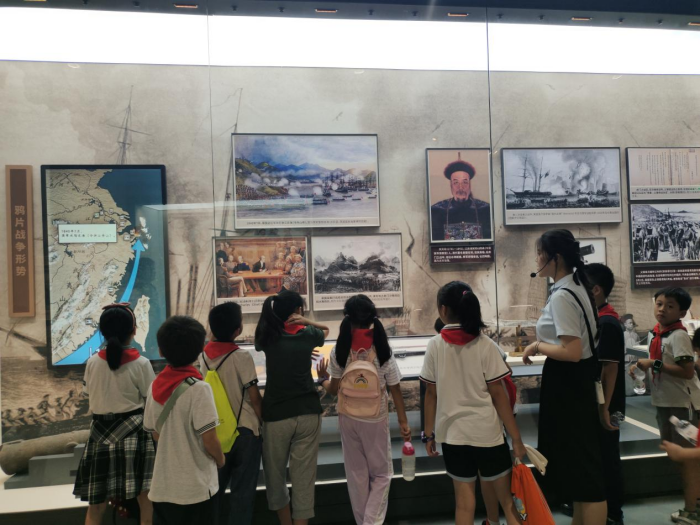 在第二十三个全民国防教育日来临之际,9月17日上午,吴侯社区党总支、社区新时代文明实践站组织辖区青少年学生前往南京条约史料陈列馆,以“踔厉奋发强国防 勇毅前行向复兴”为主题,开展国防教育实践活动。在陈列馆老师生动讲解下,孩子们参观了中英《南京条约》史实展,了解到第一次鸦片战争的历史背景,看到了中国近代历史上第一个不平等条约——中英《南京条约》谈判、议约、订立的历史史实。走过“从屈辱到自强”的5个主题展陈,孩子们心情由沉重到振奋,纷纷在“警世钟”前伫立,深刻领悟“前事不忘 后事之师”的历史含义。