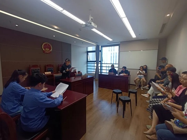 听完法律知识讲座后,同学们即刻参加了法律知识问答竞赛环节。博事达“家问家事”团队汪晴露律师通过设置填空题、单选题、多选题,全方位帮助同学们进行深度学法、普法。三轮知识问答过后,同学们根据自己累计得分依次挑选喜欢的模拟法庭剧本角色。律师针对本次案件对同学们进行了背景介绍及案件审判流程说明,帮助同学们更好的理解案件及规范模拟庭审的流程和语言用词。