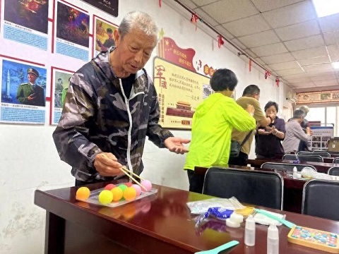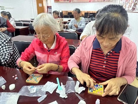 首先是夹乒乓球游戏环节,长者们虽然年龄较大,但夹起乒乓球来是一个稳,手不抖、眼不斜,一夹一个准。接着社区网格员给老人们发放了马克杯垫制作材料。在动手制作之前,网格员向大家展示了马赛克的手工艺品和功能介绍,还介绍了马赛克杯垫的制作方法。大家纷纷拿起五彩碎片,充分发挥想象力和创造力来做属于他们自己的杯垫,涂抹酒精胶、粘贴马赛克、刮抹填缝剂,在简单的木板上粘贴出各种各样的造型。