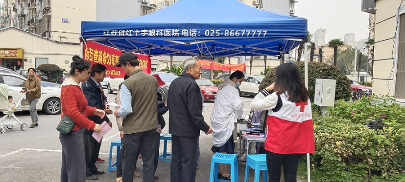 为提高辖区居民眼部健康意识,普及爱眼护眼知识,营造爱老助老的良好氛围,2023年10月10日上午,江苏省红十字会、江苏省卫健委、南京市红十字会、积善社区妇联、携手南京医科大学附属眼科医院在积善社区居家养老门前开展了主题为“博爱光明行