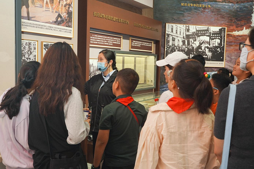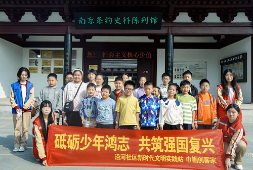 活动开始,双方齐聚在沿河社区新时代文明实践站,带领沿河社区20名青少年,共同前往《南京条约》史料陈列馆。