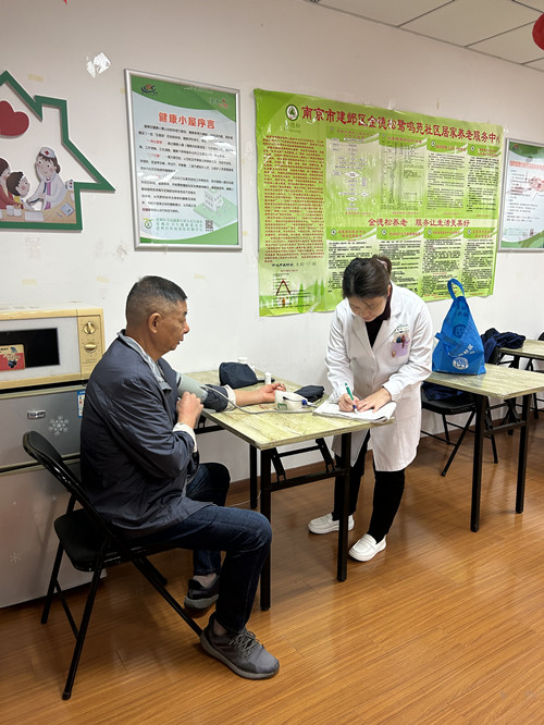 2023年10月24日,南苑社区卫生服务中心社区家庭医生来到鹭鸣苑社区为辖区居民开展测量血压,健康咨询,有糖尿病史人员测量血糖服务。