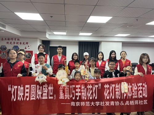 “接汉疑星落,依楼似月悬。”手工花灯是一种结合了传统花灯和现代工艺的艺术作品。凤栖苑社区联合南京师范大学社发学院志愿者开展手工制作花灯活动,让儿童与花灯艺术近距离接触。
