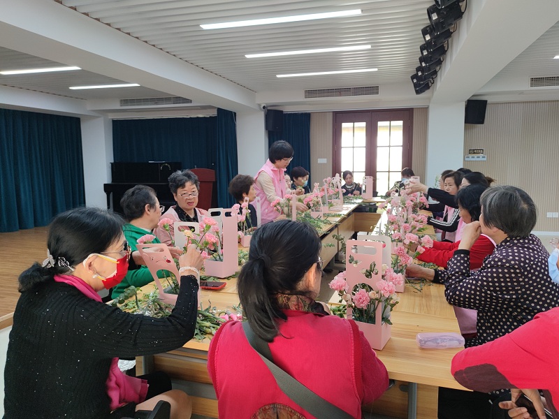 为加强辖区妇女精神文明建设,营造出文明和谐的社区氛围。庐山社区开展了手工插画艺术培训活动。居民广泛参与社区活动有利于增进居民之间交流,妇女作为特殊群体需重点关注。平时女性需要承担照顾子女和家庭的重担,在走访中了解到她们由于自身事务繁忙、缺少时间与社会接触,尤其退休后的女性居民更难以参与社会活动,这样不利于培养社区民主参与氛围。她们的需求在于,学会从繁忙事务中放松释放压力、展现自我才能。社区三八节组织女性居民手工插花活动,是要通过做手工活动的方式,迎合居民的兴趣点,在活动中实现自我增能。