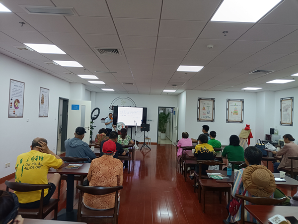 陈教授用生动风趣的语言,详实有据的观点,引经据典,为中心成员及泰山路社区周边居民数十人讲述了疫情之后大众中医养生要点与方法。陈教授分别从保持一颗赤子之心、维持动静二者平衡、学会三种养生秘方、顺应四季变化养生、饮食五谷为主原则等五个方面进行讲解,并介绍了冬病夏治、养生膏方等中医特色治未病干预方法,同时引用身边大量鲜活生动的例子佐证说明,大家听后深有同感。