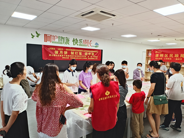 花盼阳春春盼暖,月盼中秋月儿圆,地盼丰收金浪翻,人盼盛世日子甜。在这中秋佳节的五彩花篮里,有丰美的菊花、轻柔的月光 、飘香的桂树、别致的月饼和团圆的场景。为了使未成年人更加了解中秋传统佳节,知道它的传说和习俗,同时为了培养亲子感情,增进朋辈友谊,在建邺区民政局2023年度春季公益创投的支持下,南苑街道泰山路社区新时代文明实践站携手南京市秦淮区钟晓敏爱心工作室,于9月16日开展了“做月饼 制灯笼 迎中秋”体验民俗文化,品尝“爱”的味道活动。