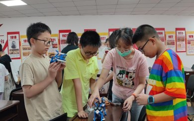 活动当天,老师通过向青少年讲解仿生机器人的搭建基础及原理,帮助分析乐高拼搭的结构,进行正确的拼搭指导。结合PPT讲解曲柄连杆、齿轮传动等机械传动方式,各零件搭建中的运用、齿轮加速的构造原理和搭建方法。引导其用乐高积木搭建“蹦蹦小兔”并展示成果。