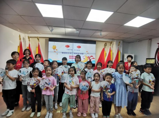 为迎接中秋佳节,增加社区节庆氛围,工作人员邀请家长与孩子一起参与团扇制作活动。各组家庭在工作人员的指导下开始动手制作。从构图到粘贴制作,大家都有条不紊的进行,动手制作的乐趣也吸引了小朋友积极参与,现场气氛十分活跃。经过一个多小时的努力,干花、绿叶在团扇上展现出它们独特的风采,原本空空如也的团扇瞬间花团锦簇,漂亮极了。
