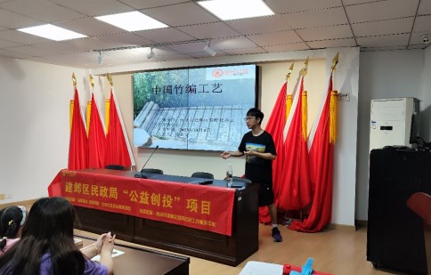 此次活动围绕“竹编文化”开展。活动伊始,老师用PPT向青少年们介绍传统竹编工艺的悠久历史,通过老师的讲解小朋友们了解到竹编是一门古老的编织艺术,分为细丝工艺品和粗丝竹编工艺品。接着,在工作人员的带领下小朋友们DIY了属于自己的竹编摆件,老师和志愿者手把手的耐心教授孩子们将竹篾以挑和压的方法构成经纬交织固定,并采用抬一压二的技法进行编织,其间孩子们耐心地向老师请教,现场大点的哥哥姐姐们还充当小老师热情地指导弟弟妹妹,通过小朋友们不断的尝试和努力,一件件用竹编编成的红色爱国主题的竹编画诞生了。