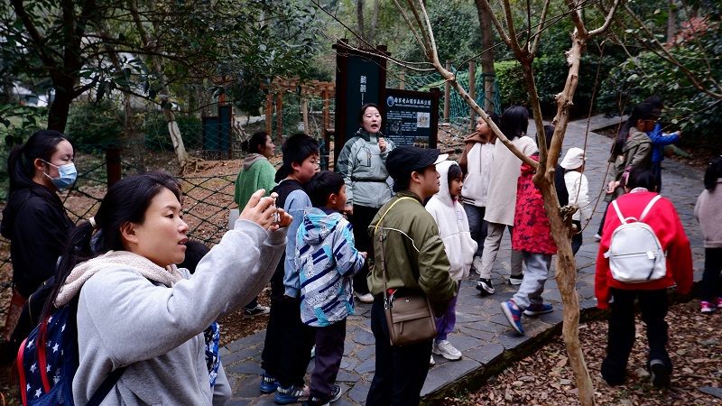 “通过利用森林的特殊环境如丰富的负氧离子等,帮助人们放松身心,培养情操,提高对动植物的认知……”讲解员老师在为孩子们讲解“森林疗养”,在老师的带领下,孩子们一路上了解收集了枫香树和乌桕树的树叶、秤锤树和麻栗树的果实。在百鸟园,大家遇见了鸸鹋、孔雀、麻鸭、天鹅、喜鹊等鸟类,它们的叫声吸引着小朋友和家长的目光。在这里,大家在讲解老师的带领下沿途听鸟声辨鸟型,观察鸟特征,观察鸟行为,近距离与各种鸟互动,感受人与自然的和谐。接下来是“随师采药”环节,孩子们跟着讲解员走入山中,开始了精彩的“寻宝之旅”,探寻“不起眼”的野草背后的神奇秘密。讲解老师还告诉小朋友们,“虽然许多中草药有着独特的药用价值,但是我们不能拿来就用,为了保证药物的安全与药效,许多中草药要经过炮制加工后才能安全使用。”