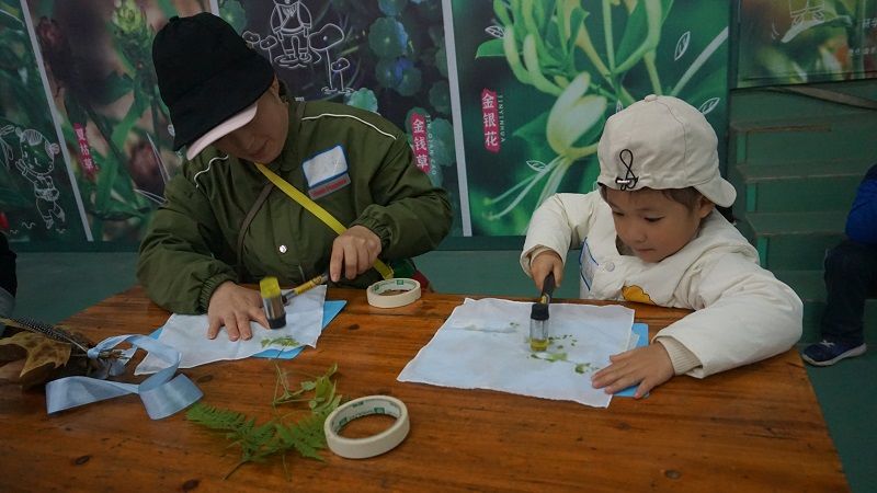 参观结束后,孩子们和家长一起将沿途采集的落叶和花草拼接起来,小朋友们以小锤为笔,在小方巾上敲出一幅幅创意十足花草画,体验着植物拓印的乐趣。“我觉得人与自然是一种和谐共生的关系,你中有我我中有你。”“保护环境可以从身边的小事做起,例如不滥砍滥伐、不随意排放有害物质、不乱丢垃圾等。”……在返回途中孩子们分享道。