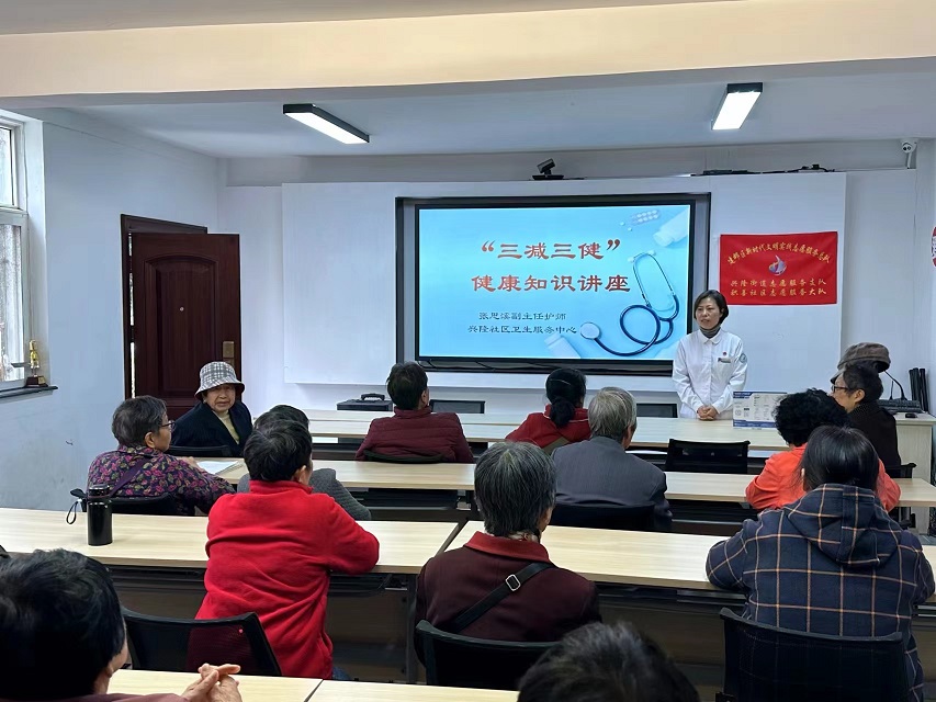 11月10日,积善社区联合兴隆社区卫生医院开展“三减三健”为主题的全民健康生活方式的知识讲座。讲座内容包括老年人在日常生活中需要了解的减油、减糖、减盐小知识,以及高血压、糖尿病、骨质疏松等常见慢性病防治知识。活动中,宣讲人员向老人仔细讲解什么是“三减三健”,强调减盐、减油、减糖对健康的重要性,并倡导老人养成良好的生活习惯,养成健康生活方式,防控慢性病的发生。