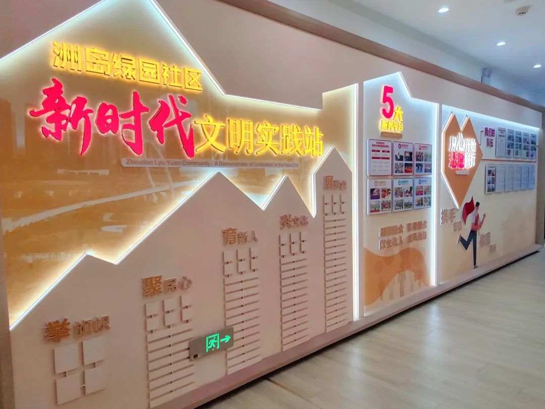 二楼有一大一小两个会议室,大会议室可以容纳约100人,小会议室可以容纳25人左右。另外还有一个社区新时代文明实践站。实践站主要以群众需求为导向,开展形式多样的文明实践志愿服务活动。同时,社区还建立了多支志愿服务队伍,为辖区文明创建、安全环保、文化惠民等工作提供多样化的志愿服务。
