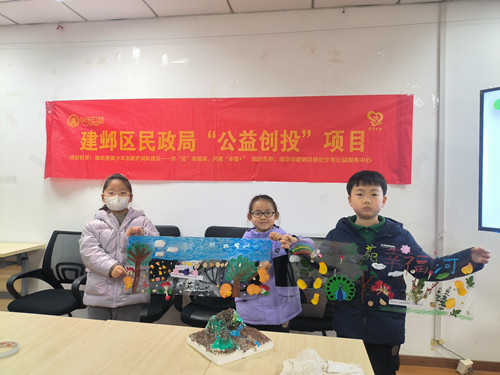 社区展板的手工制作,让孩子们铭记“小小志愿者,大大护河能量”的同时,进一步提高孩子们的环保意识,践行绿色环保理念,通过对拾捡回来的花草、枝干和树叶进行创意发挥,极大地激发了孩子们动手创作的兴趣,同时也锻炼了孩子们的动手实践能力。通过艺术创作变废为宝,有效地培养了孩子们节约资源,保护环境的意识,营造了绿色环保的良好氛围。